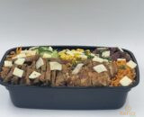 Beef, tortilla, sweetcorn, red kidney beans, jollof rice, cheese, mixed vegetables