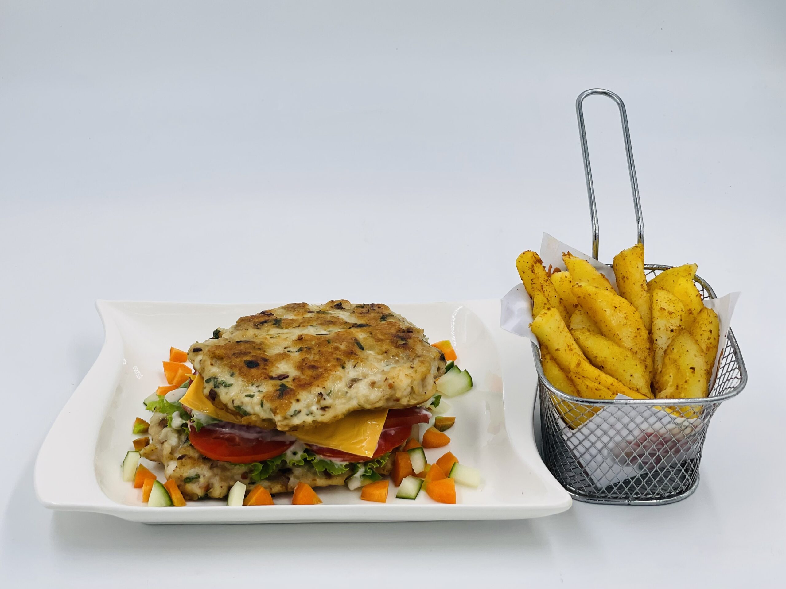 Double chicken patty, cheese, mixed vegetables, pan grilled Irish
