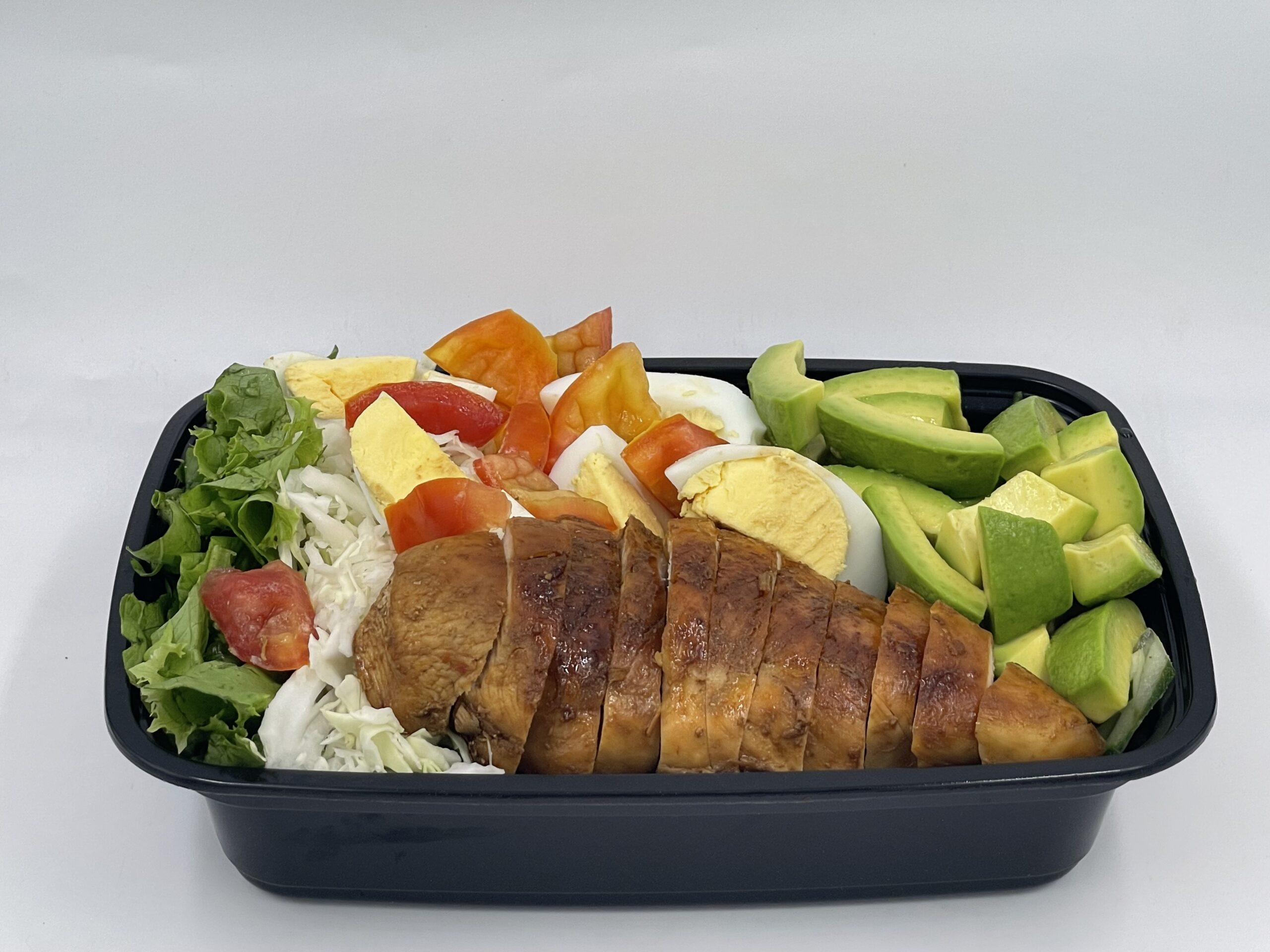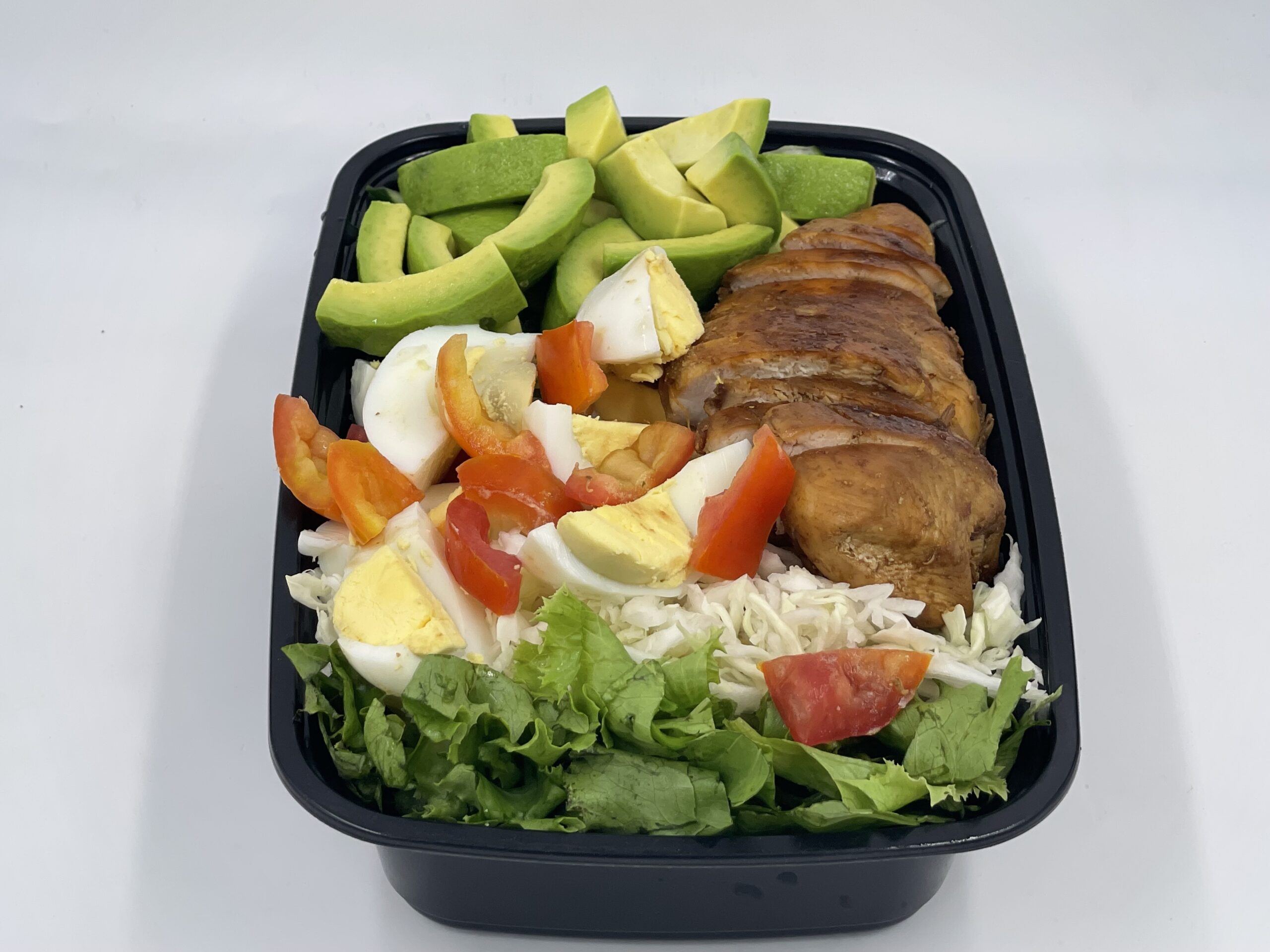 Lettuce, cabbage, tomatoes, avocado, eggs, chicken